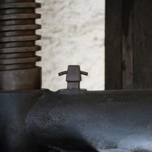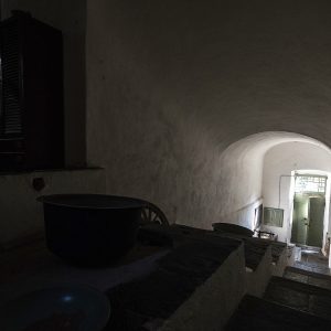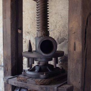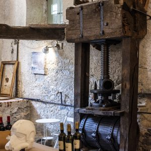 A dare carattere alla grande sala è un imponente torchio in castagno, con un’antica caldaia.