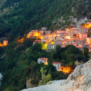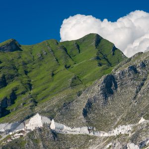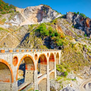 Of the local towns, Torano is moon-like, Colonnata is located to the east, Fantiscritti the most suggestive of the villages with its bridges Ponti of Vara where every August an historic re-enactment of the traditional lizzatura takes place, an ancient and extremely dangerous method of transporting blocks of marble down the mountainside takes place. These three places where marble extraction takes place in the Apuan Alps majestically rise behind the city of Carrara. Imposing, shiny white mountains from which marble has been quarried since the pre-Roman era: indeed, well before Romans, Carrara marble was used by the Etruscans and likely by the Ligurians from Ameglia too. Nowadays the marble is extracted and exported throughout the world from this little corner of Northern Tuscany.